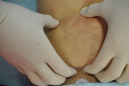 とある有名人の太ももの脂肪吸引!右太もも後面術中