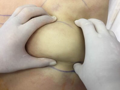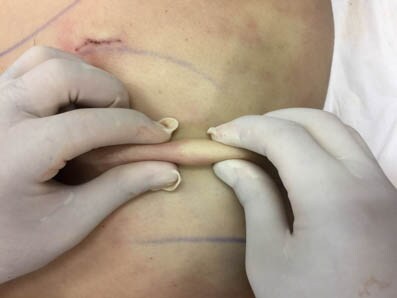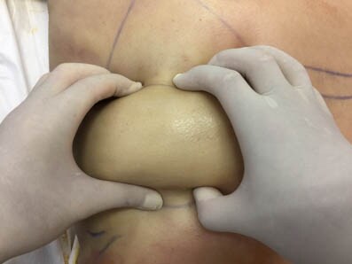 九州からご来院された外国人の患者様の二の腕をベイザー併用アキーセル脂肪吸引で細くする!術中変化の写真と術中動画・左肩甲骨横の術中劇的変化