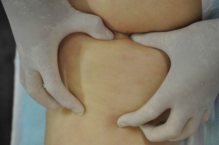 九州からご来院された外国人の患者様の二の腕をベイザー併用アキーセル脂肪吸引で細くする!術中変化の写真と術中動画・左肩甲骨横の術中劇的変化