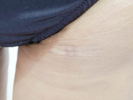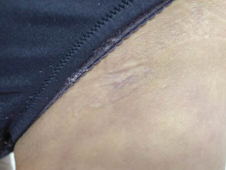 | 脂肪注入による豊胸術の脂肪採取部位の傷・術後1ヶ月目 |