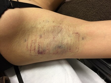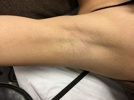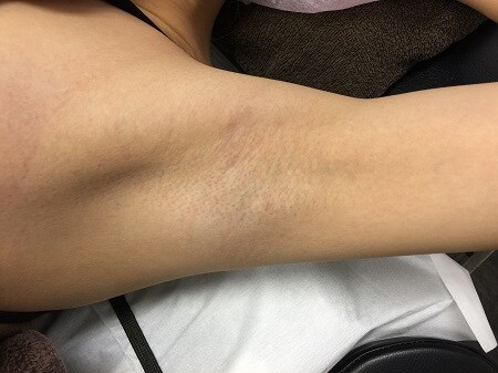 | リピーターの患者様のワキ汗をミラドライで長期間抑える!左ワキ術中 |
